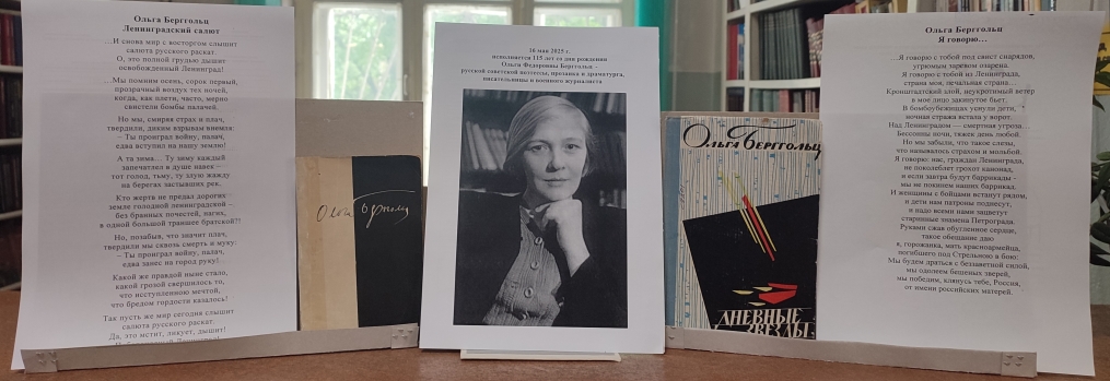 В честь 115 лет со дня рождения Ольги Федоровны Берггольц в библиотеке Йошкар-Олинского технологического колледжа подготовлена книжная выставка.